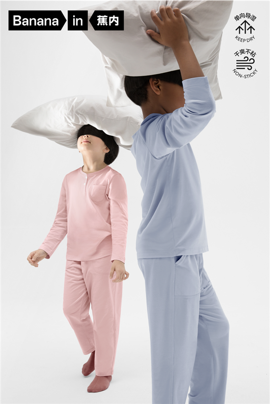 憑借在Airwarm熱皮空氣保暖技術(shù)、Movestech防曬涼感技術(shù)等功能面料創(chuàng)新之路上汲取的智慧和力量,蕉內(nèi)顛覆傳統(tǒng)思路的破局點(diǎn)落在了面料的微觀結(jié)構(gòu)重組,將一種具有單向?qū)窆δ艿碾p層面料應(yīng)用于兒童家居服。單向?qū)袷且豁?xiàng)獨(dú)特的棉織物吸濕排汗技術(shù),可以降低潮濕織物給皮膚帶來(lái)的不適感,在人體表面構(gòu)建一層智能吸汗導(dǎo)濕屏障。