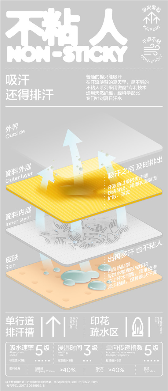 今夏備受消費(fèi)者青睞和業(yè)界好評(píng)的“不粘人”兒童家居服,正是蕉內(nèi)回歸產(chǎn)品本質(zhì),以技術(shù)深耕用戶(hù)體驗(yàn)的成功例證。秉持以科技創(chuàng)新喚醒更好的日常,不斷提升生活品質(zhì)新高度的蕉內(nèi),以?xún)和w感特征、面料科技研究、個(gè)性創(chuàng)意設(shè)計(jì)三方面為重要抓手,讓這款采用微窗??單向?qū)駥?zhuān)利技術(shù)的蕉內(nèi)“不粘人”兒童家居服,實(shí)現(xiàn)兼具舒適與排汗的出色效果。
