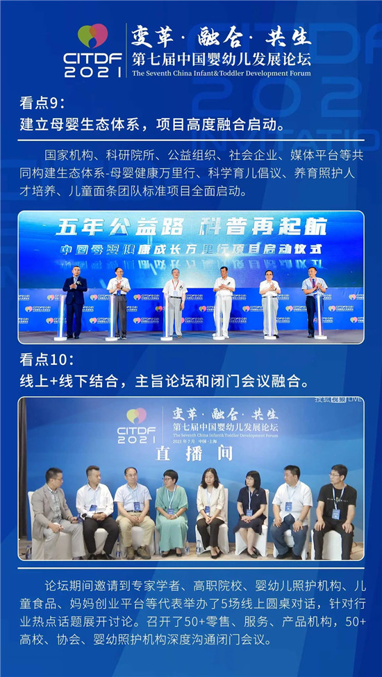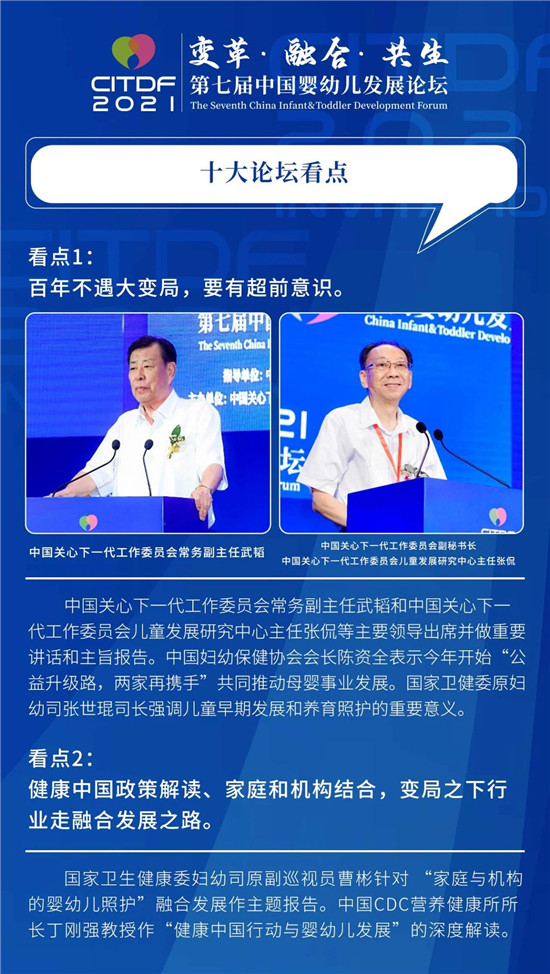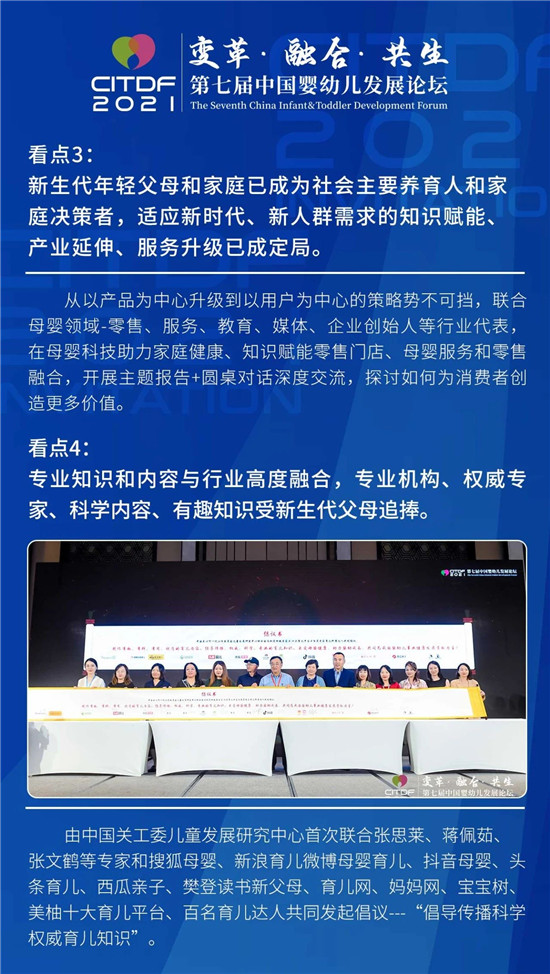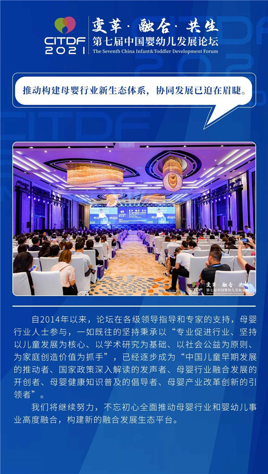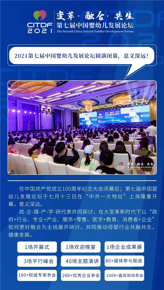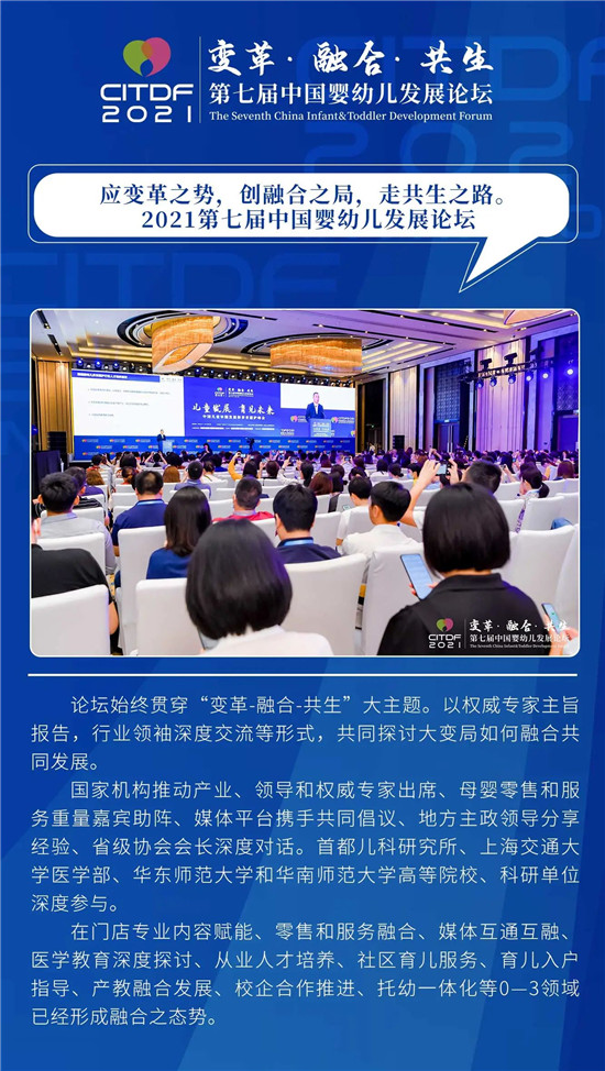 2021第七屆中國嬰幼兒發(fā)展論壇以“變革 融合 共生”為主題,在國家政策深度解讀、母嬰行業(yè)發(fā)展趨勢(shì)、專業(yè)知識(shí)賦能母嬰零售、母嬰服務(wù)和零售如何高度融合、育兒平臺(tái)新玩法新動(dòng)向、養(yǎng)育照護(hù)指南、社區(qū)和入戶育兒服務(wù)、產(chǎn)教融合、托幼一體化等方面進(jìn)行全面深入探討,直擊行業(yè)痛點(diǎn)、打造以消費(fèi)者需求為中心的全面解決方案。10大看點(diǎn)帶你回顧論壇精彩瞬間。