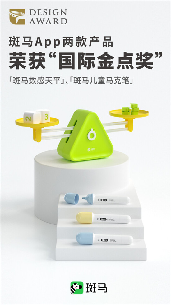 近期,斑馬App兩款產(chǎn)品“斑馬數(shù)感天平”、“斑馬兒童馬克筆”榮獲2021國際金點(diǎn)獎。