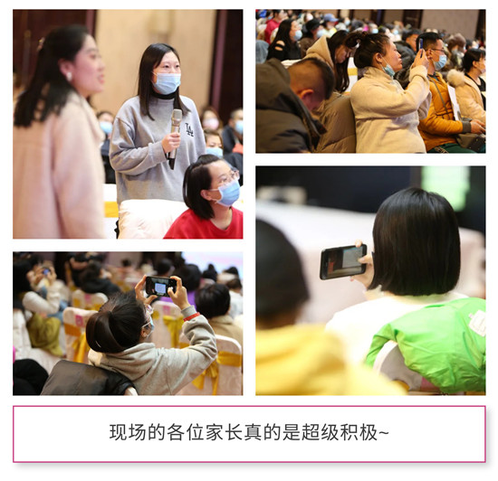 考慮到全國疫情特殊時期,活動開始前,主辦方組織人員進行電話回訪并提醒參會家長做好防護工作,活動現(xiàn)場按照要求間隔排隊、就坐,近300組家庭參會聽講。張思萊老師為到場的家庭帶來《嬰兒床里的科學家—始于生命之初的學習與體驗》為主題的科普講座。寶寶出生之后全家興奮喜悅,但是出生后的寶寶一些表現(xiàn)又讓初為父母的爸爸媽媽產(chǎn)生焦慮困惑心情。其實寶寶天生就是學習家和體驗家。大多數(shù)行為都是后天通過各種途徑學習和體驗獲得的。如何依照寶寶自己的學習方式讓他去學習吃、學習睡、學習便便、學習看、學習聽、學習說、學習交流?張思萊老師在講座中從不同角度段展開詳細講解,一一解答了爸媽的這些育兒困惑。